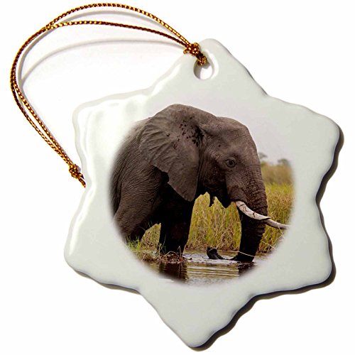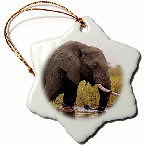 3dRose orn_131428_1 Botswana, Okavango Delta Elephant AF05 KWI0007 Kymri Wilt Snowflake Porcelain Ornament, 3-Inch