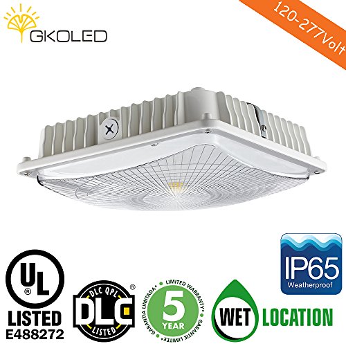 GKOLED 45W White LED Canopy light, 175-200W MH/HPS/HID Replacement, 5000K Daylight White , 4200Lumen, 120-277VAC, IP65 Waterproof and Outdoor Rated, UL-Listed and DLC-Qualified, 5 Years Warranty