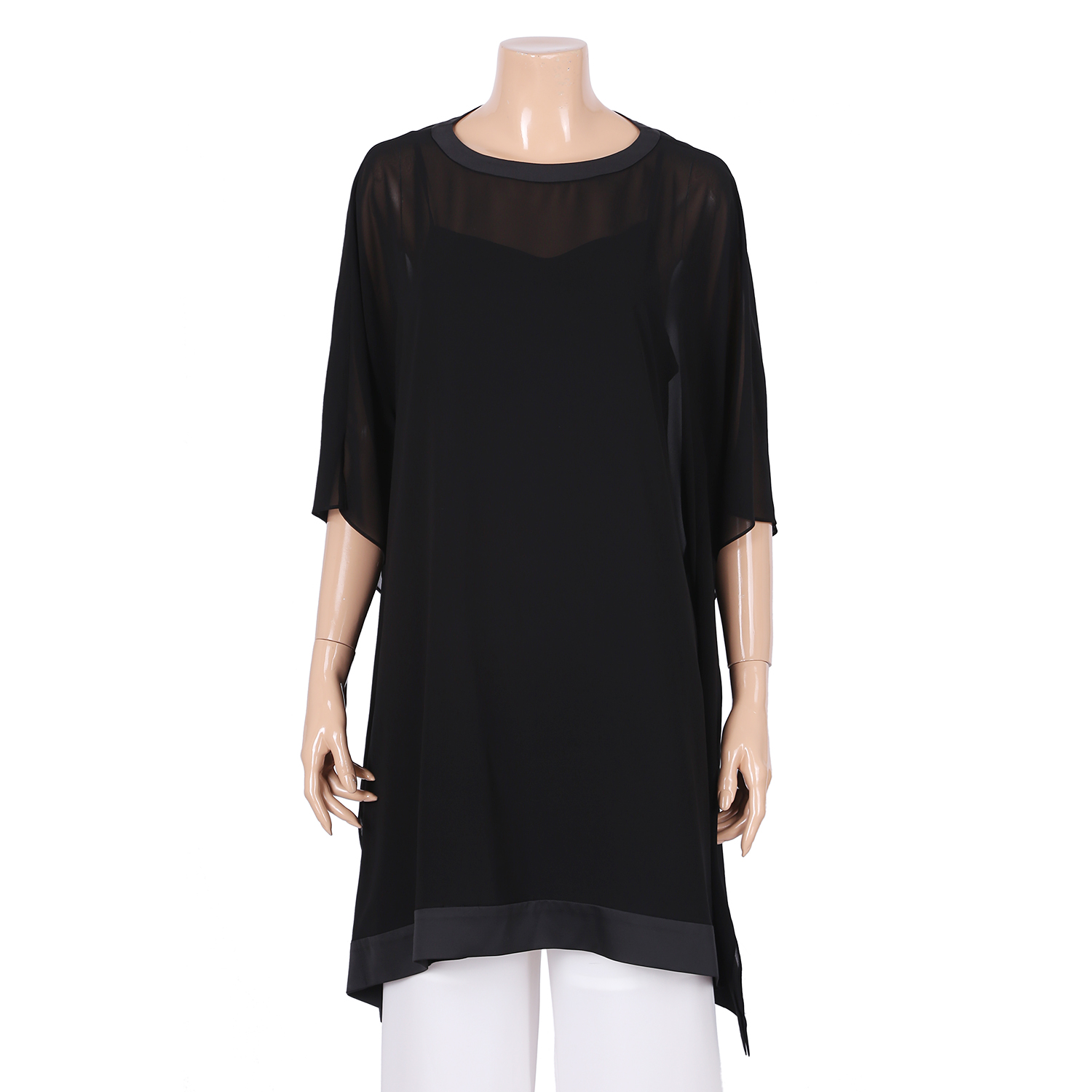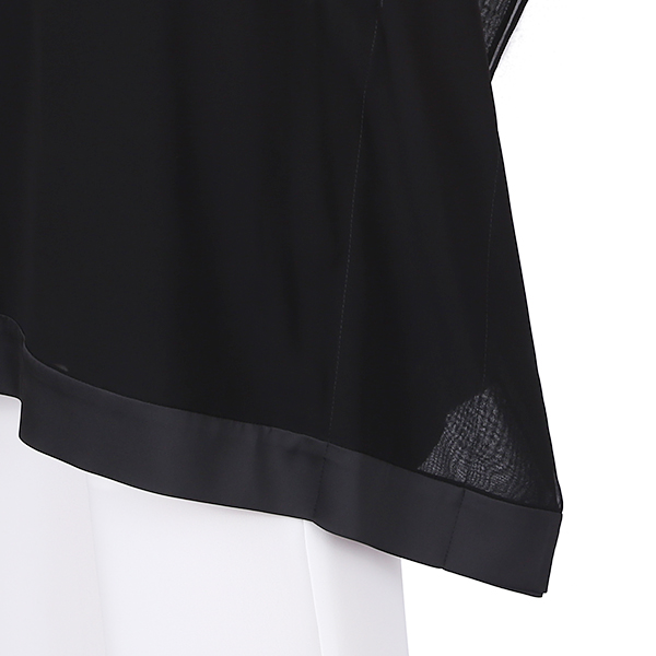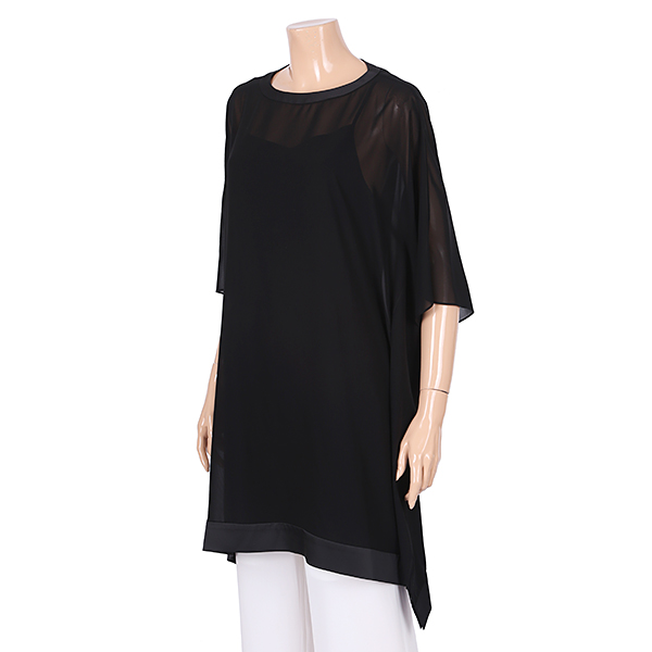 이 제품은 가오리형의 박스스타일로 실루엣이 매우 멋스러우며 시스루가 매우 세련된 제품입니다
