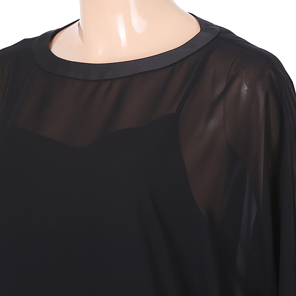 이 제품은 흑블랙의 가오리스타일의 롱블라우스 스타일의시원한쉬폰박스 원피스 입니다