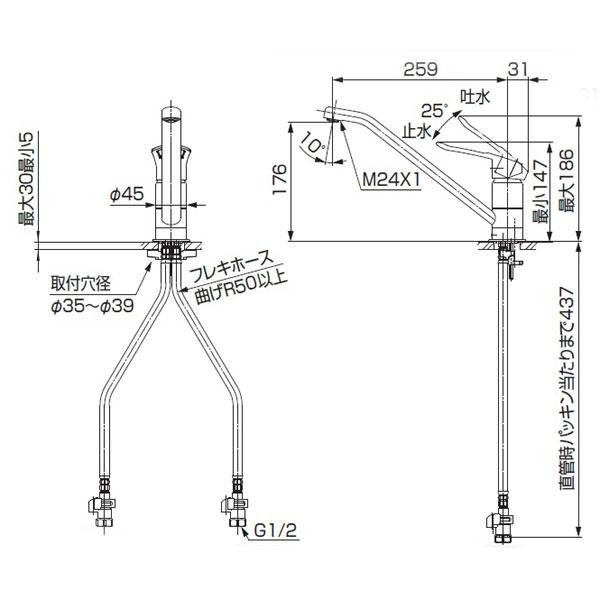 | 仕様 | JISマーク取得済 節湯C1、節湯B 節水水栓 エコ位置クリック 上面施工式 フレキ 泡沫吐水 |