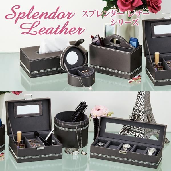 シックなダークグレーのフェイクレザーに、キラキラのラインストーンが引き立つ高級感あふれるダストボックスです。