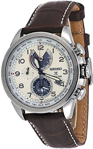 -. Title : Seiko SSC509 Mens PROSPEX World Time Leather Solar Watch w/Date