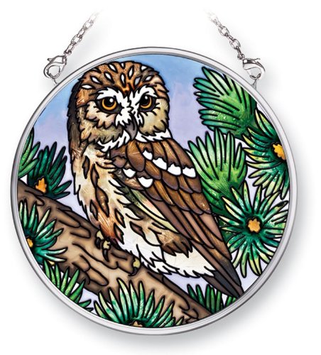 Amia 41513 Owl on Branch 3-1/2-Inch Circle Sun Catcher, Small