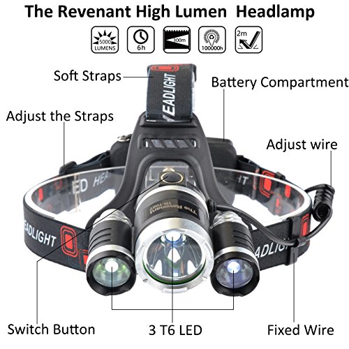 Super bright Waterproof 3x XML-T6 LED beam. Adjustable (90 degree). Lifespan reach up to 100,000 hours. Brightness up to 5000 lumens you’ll be able to see up to 250 yards away even when it’s pitch dark.