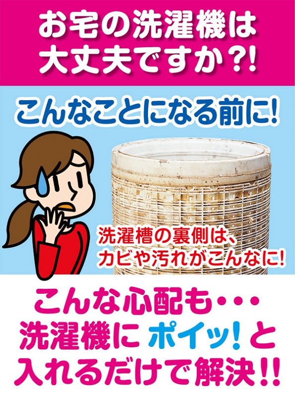 洗濯水と洗濯層をまるごと除菌、いつも清潔お洗濯!洗濯機にポンと入れるだけ。