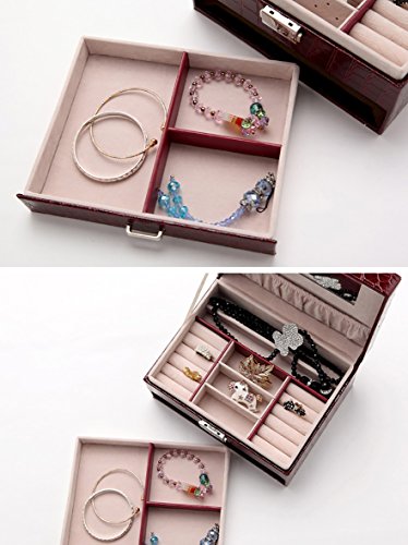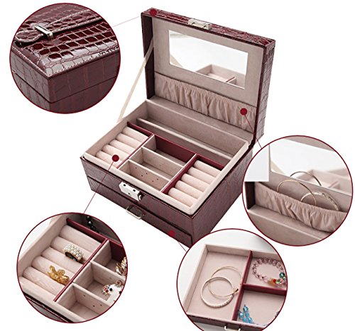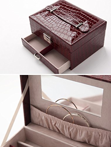 Two-layer Lint Jewelry Box Pu Leather with Makeup Mirror Organizer Storage for Girls Women By Wonlives (bordeaux red)