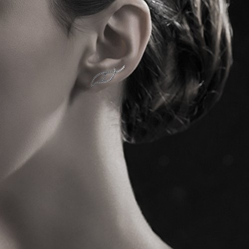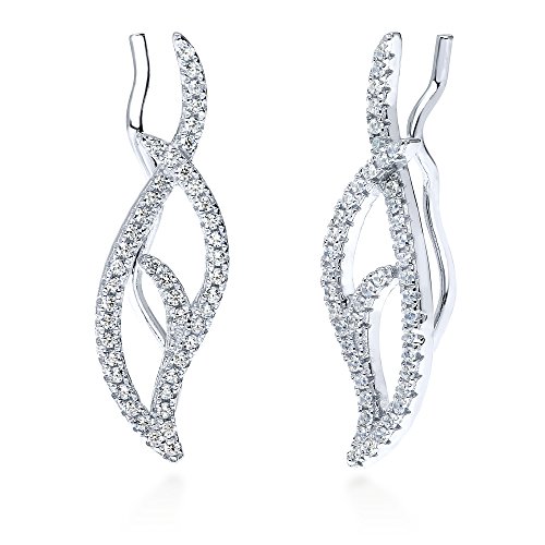 These leaf filigree ear crawlers' delicacy and femininity pay an admirable homage to nature's beauty. Made of rhodium plated fine 925 sterling silver. Set with 0.45 carat round cut clear cubic zirconia (1mm) in micro pave setting. Earrings measure 1.1 inch in length, 0.3 inch in width. Ear wire. Imported.