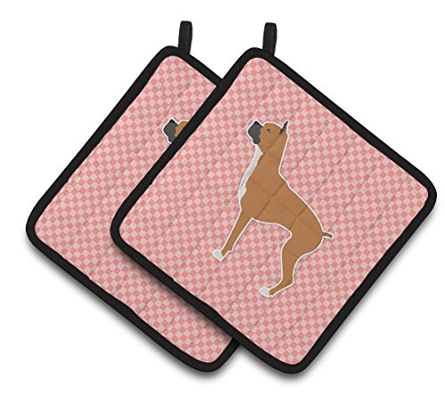 Caroline's Treasures Boxer Checkerboard Pink Pair of Pot Holders BB3653PTHD, 7.5HX7.5W, Multicolor