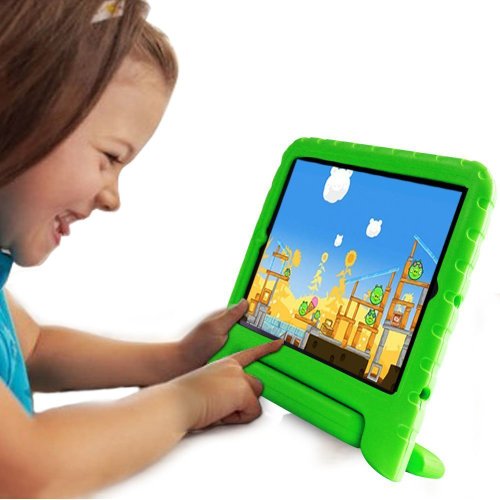 No, we don't mean military school. We mean a protective case and screen protector for that new Apple iPad air. This case is made of treated foam that creates a shock-proof and child-proof shell around your tablet, preventing fall damage and scratches from ruining your investment. The soft grip handle folds over to turn the case into a stand so your child can prop their tablet on a desk while they watch their favorite episodes of Spongebob Squarepants or Adventure Time.