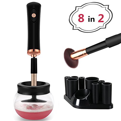 Makeup Brush Cleaner,ATTUOSUN Electric Brush Cleaner and Dryer 360 Rotation with 8 Rubber Collars, Makeup Brush Cleaner Kit Suit for Most of Size...