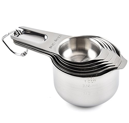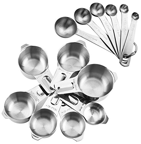 E-Online 13-Piece Stainless Steel Measuring Cups and Measuring Spoon Set - 7 Measuring Cups, 6 Measuring Spoons and 2 D-Rings