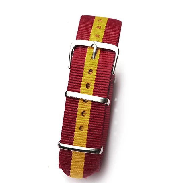 [해외] 소매 20 미리메터 레드 옐로우 레드 스포츠 나토 직물 시계 밴드 스트랩 액세서리 밴드 나일론 손목 스틸 버클 벨트