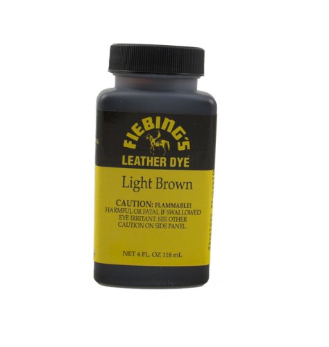 -. Binding : Office Product -. Brand : Fiebing -. EAN : 0700175601964 -. Feature : Fiebing's Permanent Leather Dye / For use on vegetable tanned or unfinished leather / Penetrates and dries uniformly / No Cracking or Peeling. PRODUCT IS FLAMMABLE. SHIPS VIA UPS / Can be mixed with other Fiebing's colors -. Label : Fiebing Company -. Manufacturer : Fiebing Company -. PackageQuantity : 1 -. ProductGroup : Art and Craft Supply -. ProductTypeName : ART_SUPPLIES -. Publisher : Fiebing Company -. Studio : Fiebing Company -. Title : Fiebing's Light Brown Leather Dye 4oz -. UPC : 700175601964