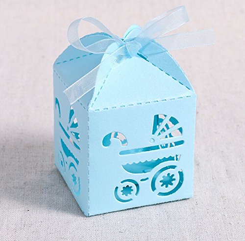 Joinwin® 50 PCS Laser Cut Baby Carriage Favor Box, Gift Box, Candy Boxes for Baby Shower Party (Baby Blue)