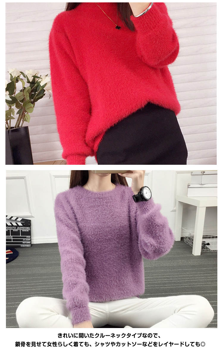 | 思わず触りたくなるようなふわっふわのモヘアタッチで、着こなしをぐっとフェミニンに演出してくれるニットが登場。 きれいに開いたクルーネックタイプなので、鎖骨を見せて女性らしく着ても、シャツやカットソーなどをレイヤードしても◎ ほどよくゆとりのあるシルエットで、リラックスして着用できるのもうれしい。 シンプルながらも主役級の存在感ただようニットを、ぜひワードローブに加えてください。 | |