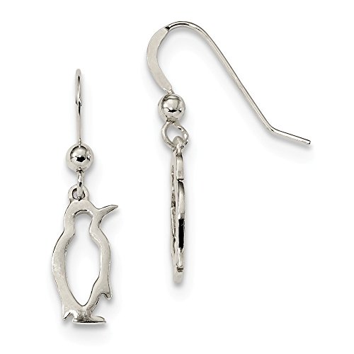 Solid 925 Sterling Silver Penguin Shepherd Hook Earrings (6.7mm x 25.5mm)