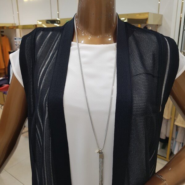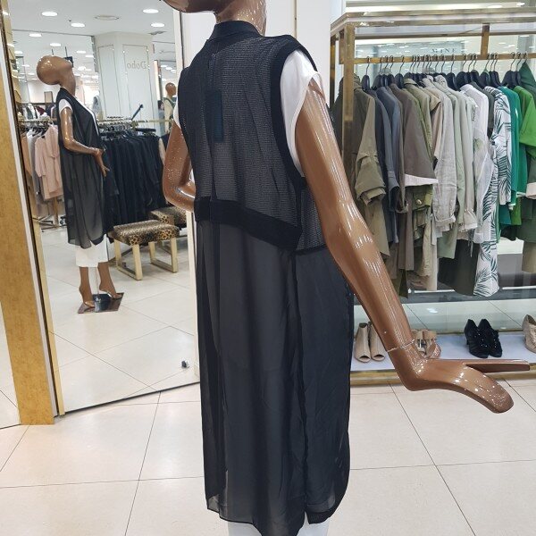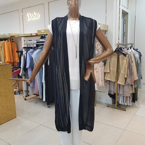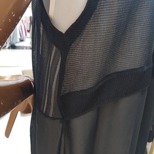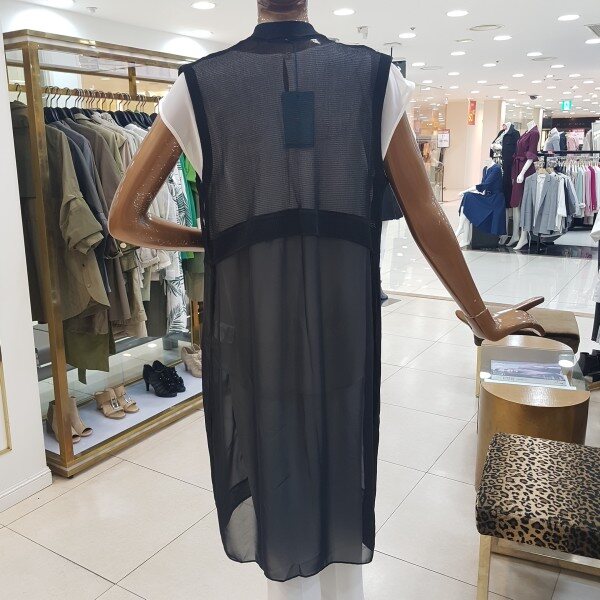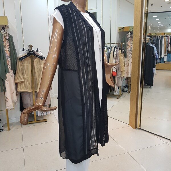 니트소재에 쉬폰이 배색으로 들어간 베스트입니다.