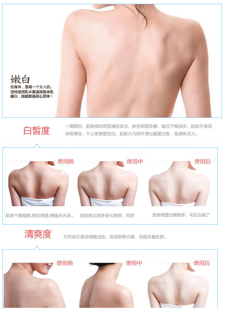 美 白滋润皮肤的同时,补充肌肤所需水分,保持肌肤动态水平衡,使肌肤恢复如丝般的柔嫩润滑,持续使用更令肌肤白皙细嫩、柔滑亮丽!防止皮膚老化,保持年輕, 身子抹上去也很快吸,精选的水合脂质组合使皮肤更佳滋润,并赋予柔滑细嫩的触感;生化辅酶Q10紧致皮肤、提升弹性,并稳定其良好状态,特别适合干燥皮肤 使用。