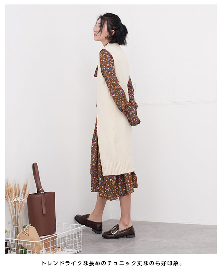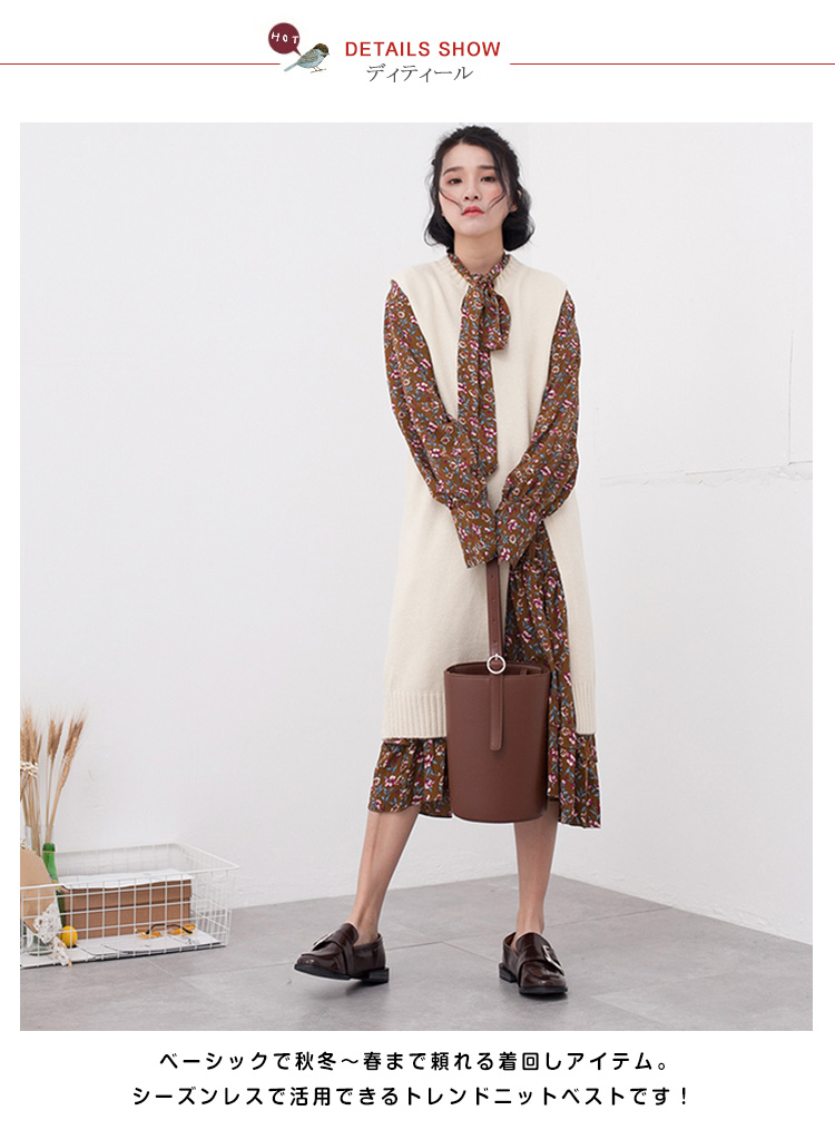 | デザインにこだわった、定番のニットベスト。フロントあしらった深いスリットがこなれ感を演出します。トレンドライクな長めのチュニック丈なのも好印象。シャツやワンピースとレイヤードするコーデがイチオシです。シンプルなルックスで大人っぽさをアピールします。1枚で周りと差がつく、この春注目の一品です。 | |