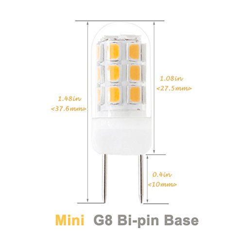 - 【Mini Size】G8 Bi-pin base with mini size:1.48inch*0.4inch. Easy to install. Work safely on AC110V-130V. You can adjust the brightness with LED Dimmer. It’s one of the best alternatives to g8 halogen lamp.