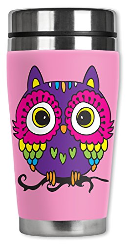 -. Binding : Kitchen -. Brand : Mugzie -. Color : Multicolor -. EAN : 0719363628485 -. Feature : 16 Oz Stainless Steel Travel Mug covered with water-proof, neoprene wetsuit material / Hand-sewn fabric cover is made from 1/4 inch closed-cell neoprene that is covered with soft, water-proof polyester fabric / Stain-resistant cover is P.R.Inted in hi-resolution and has full-wrap coverage. Spill resistant lid and a non-skid bottom / Cushioned cover affords a secure grip and eliminates condensation and sweating. Fits in most car cup holders and the counter-weighted bottom provides stability. Bottom diameter is 2 3/4 Inch / Patented. Truly unique. Made in the USA -. Label : Mugzie -. Manufacturer : Mugzie -. Model : Pink Owl-MUGZIE -. MPN : Pink Owl-MUGZIE -. PackageQuantity : 1 -. PartNumber : Pink Owl-MUGZIE -. ProductGroup : Kitchen -. ProductTypeName : KITCHEN -. Publisher : Mugzie -. ReleaseDate : 2015-10-31 -. Size : 16 oz -. Studio : Mugzie -. Title : Mugzie Pink Owl Travel Mug with Insulated Wetsuit Cover, 16 oz, Multicolor -. UPC : 719363628485