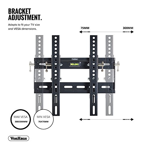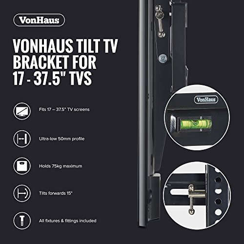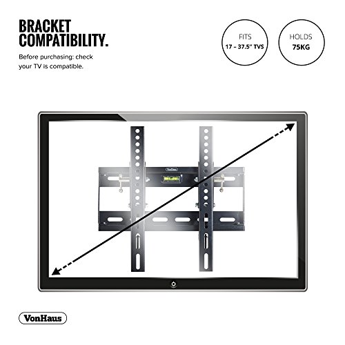 -. Binding : Electronics -. Brand : VonHaus -. Color : Black -. EAN : 5060147554816 -. Feature : Weight rated to 165lbs - This bracket is one of the strongest brackets available on Amazon / Constructed from Reinforced Steel / Cut outs to mount over plug sockets and Ariel plates / This Bracket is Universal and will Fit 99% of all makes and models of TV within the stated size range (17" to 37.5") Max VESA Dimensions 300 x 300mm / Quick and easy to install - bracket comes complete with full instructions and FREE FITTING HARDWARE -. Label : VonHaus -. LegalDisclaimer : UK buyers only -. Manufacturer : VonHaus -. Model : 05/006 -. MPN : 05/006 -. PackageQuantity : 1 -. PartNumber : 05/006 -. ProductGroup : Speakers -. ProductTypeName : AV_FURNITURE -. Publisher : VonHaus -. Studio : VonHaus -. Title : VonHaus TV WALL MOUNT Fits All Models LCD, LED & Plasma TV - Samsung Sony Philips Toshiba - (17 - 37.5") - Super-Strength 165lbs load capacity with Tilt Mechanism