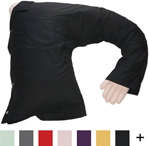 Lose the Loneliness - The original Boyfriend Pillow from Deluxe Comfort offers exceptionally comfortable support, and is a favorite among those that don't like to sleep alone. The soft pillow, shaped like a man’s upper body, is wearing a man's soft t-shirt cover. The single arm wraps perfectly around the neck of the user, creating a feeling of closeness, comfort and love.The ideal choice for both women or men that desire the feel of a man's embrace. Perhaps your partner travels on business often, or works the opposite shift as you. Just spray the t-shirt cover with his preferred scent and it’s almost like he never left. Has your loved one gone on military leave? Cover the Boyfriend Pillow with his favorite t-shirt, close your eyes, and let your imagination fly. If you are recently going through a break-up, you know as well as we do that few things are as difficult as getting used to sleeping alone again. With the Boyfriend Pillow, you don't have to!