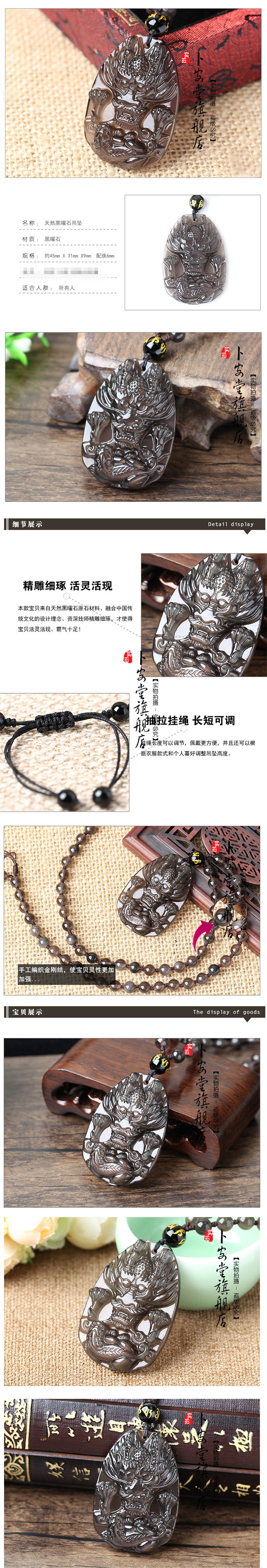 开光天然冰种彩虹眼黑曜石属狗狮兔送福黑曜石吊坠