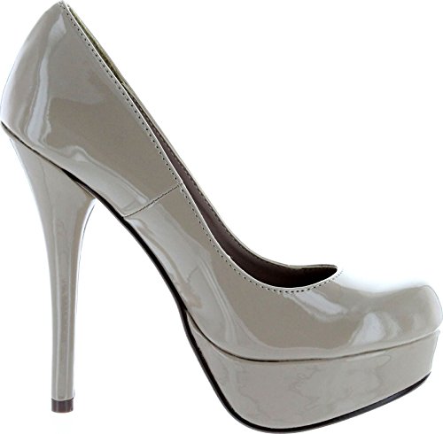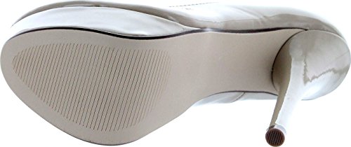 Product DescriptionWhite Leatherette Patent Pumps features round toe with slender heel. Platform 1 1/4" 5 1/2" . True to Size .0
