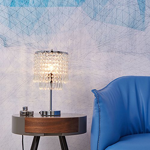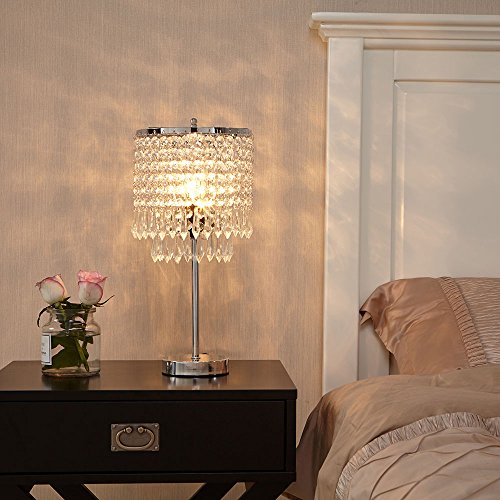 POPILION Elegant Decorative Chrome Living Room Bedside Crystal Table Lamp,Desk Lamp With Crystal Shade for Bedroom Living Room Coffee Table Bookcase