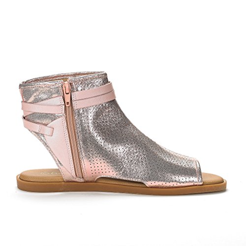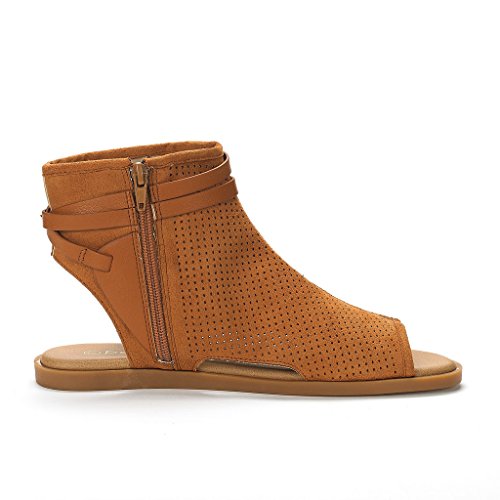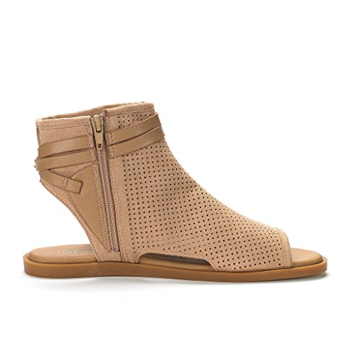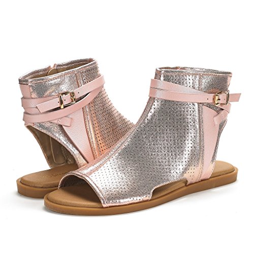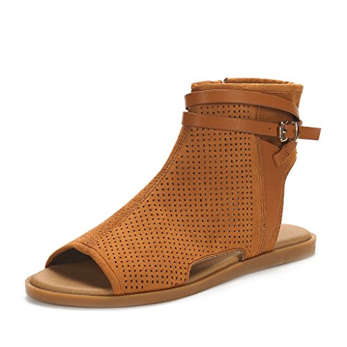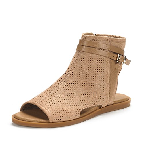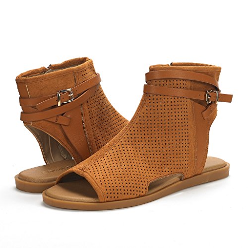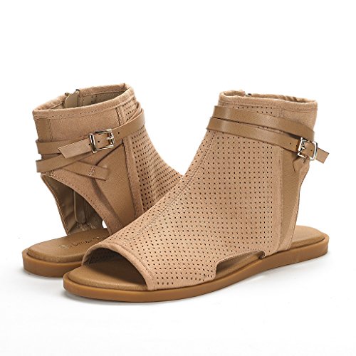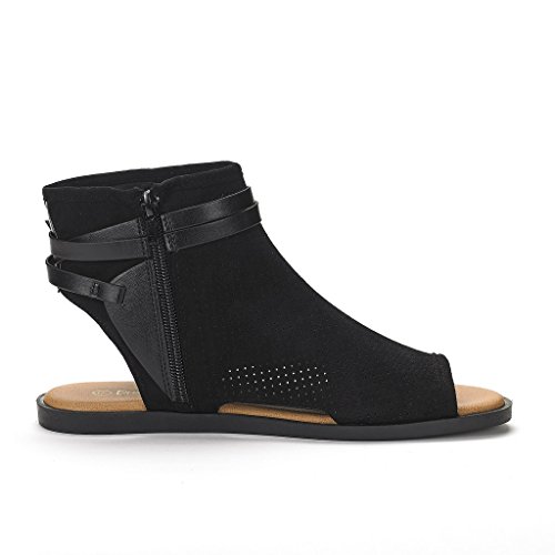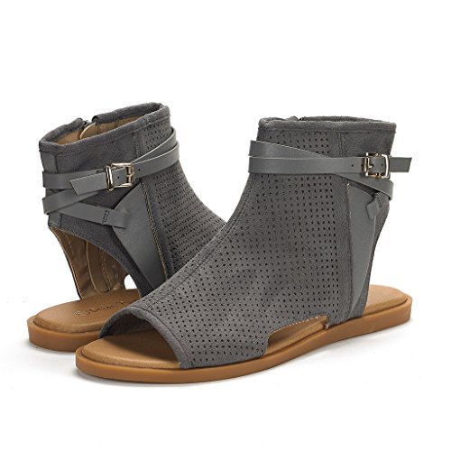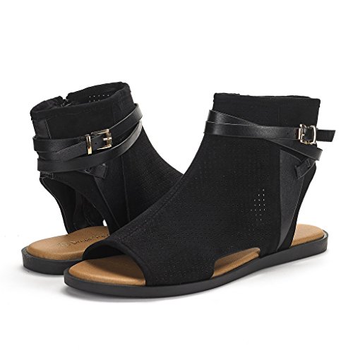 DREAM PAIRS RUULE New Women Open Toe Fashion Mesh Side Zipper Summer Design Flat Sandals