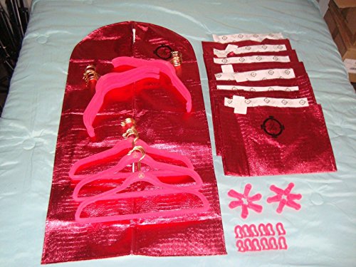 -. Feature : 36 Suit hangers, 36 Shirt hangers, 6 Totes, 12 Ultra slim pant/skirt clips, 12 Cascading mini hooks, 12 Sheets snowflake P.R.Int tissue, paper 6 Gift tags / Hangers: Hot Pink with Brass, Approx. 17-1/2"L x 1/4"W x 9-3/4"H / Shirt Hangers: Hot Pink with Brass, Approx. 16-1/2"L x 1/4"W x 9-3/16"H / Totes: Approx. 18"L x 5"W x 12" / Deep Ultra Slim Pant/Skirt Clips: Approx. 2-3/16"L x 7/8"W x 1"H Cascading Mini Hooks: Approx. 11-1/2"L x 1"W x 1-1/2"H