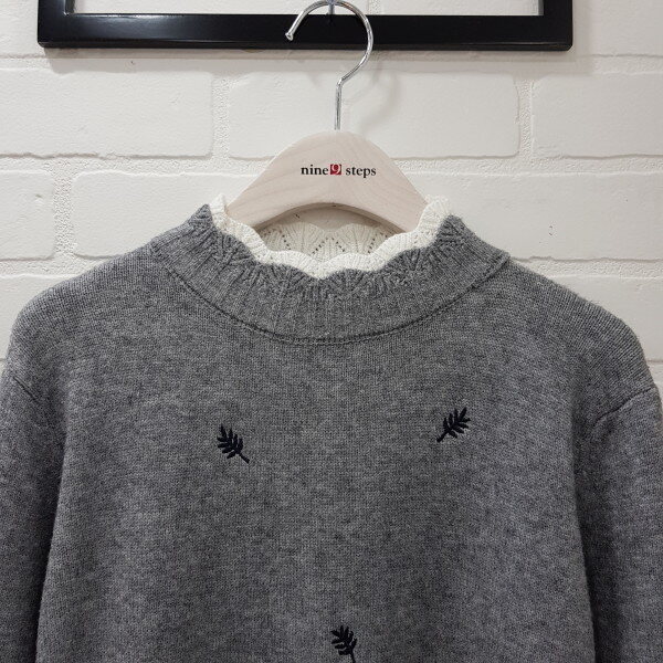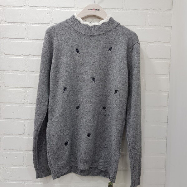 나뭇잎자수가포인트이고 이중카라에반목니트입니다 소재가부드러워서 입으시기편한니트입니다