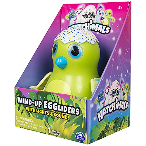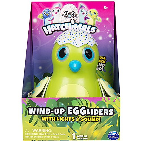 Studio : Spin Master Publisher : Spin Master Binding : Toy Product Description Send your-self into a flap with Hatchimals Wind-Up Eggliders. Watch as your Egglider moves, lights and flaps its wings. It will also glide when pulled back and also makes adorable Hatchimal sounds. Watch your Hatchimal respond when you push its beak. They're the ultimate play partner you're guaranteed to love! A great gift for ages five and up. 0