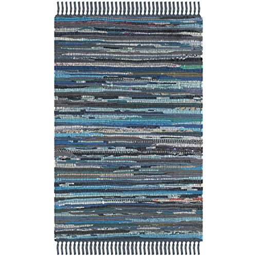 The simple charm of American textile art beams from this rug from Safavieh's Rag Rug Collection. Its chic, contemporary styling makes it a unique floor covering ideal for casual rooms. Expertly handwoven by village artisans in India, this textural rag rug is truly a one of a kind piece.