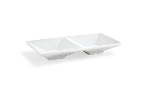 Front of the House DSD035WHP22 Kyoto Divided Dish, 1.25" Height, 4.5" width, 9" Length, 3 oz. Per Section, Porcelain (Pack of 6)
