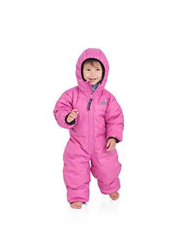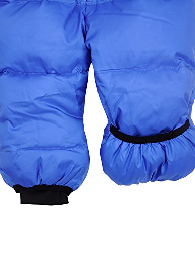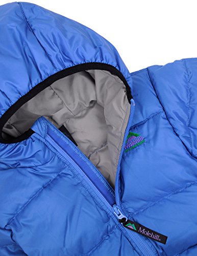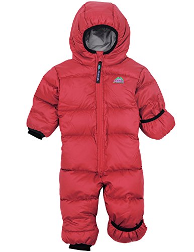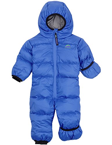 Molehill's Summit Down Bunting Suits are the warmest insulated suits on the market. The 80/20 fill of goose down and feathers (700 goose down fill power) provides the perfect insulation for those really cold environments. Our micro rip-stop polyester exteriors give the needed toughness. Shells feature durable water repellent (DWR) down proof recyled polyester which helps to repel moisture. Cuffs (sleeves/legs) and waist (back only) are elastic to offer versatility and a better fit. Interior Lycra wrist and ankle gaskets promote added warmth. Fold over hands and feet eliminate the need for mittens and booties on quick trips out. Molehill logo on left chest. Fully insulated non-removable hoodie. Zippered front with reinforced zipper flap to seal out the wind. This is the perfect boys and girls down bunting suit for the coldest environments like snow. These down suits for infants and toddlers are only available in sizes 3/9 mos up to 3T. ABOUT MOLEHILL MT. EQUIPMENT: Since 1994, Molehill Mt. Equipment has concentrated on offering the highest quality infant, toddler, and junior apparel reminiscent of the top quality products from the adult outdoor sporting goods industry. Our apparel lines stress a layering concept and offer technical fabrics and functional features. PLEASE BE AWARE THAT DUE TO LIGHTING, THE COLOR OF SOME GARMENTS MAY APPEAR DARKER/LIGHTER IN PERSON THAN THEY MIGHT APPEAR ON YOUR MONITOR SCREEN.Feature