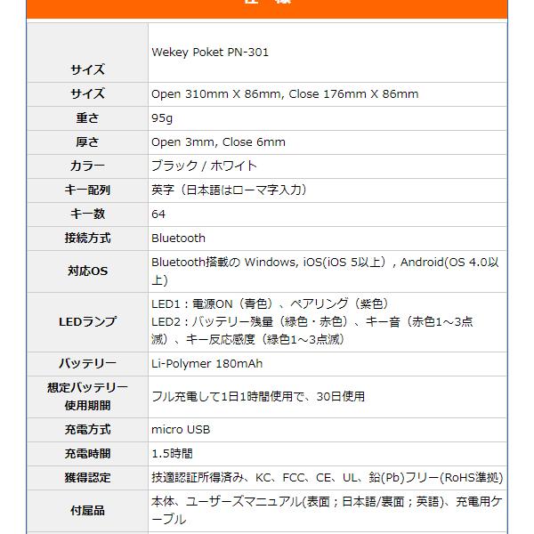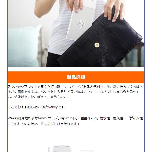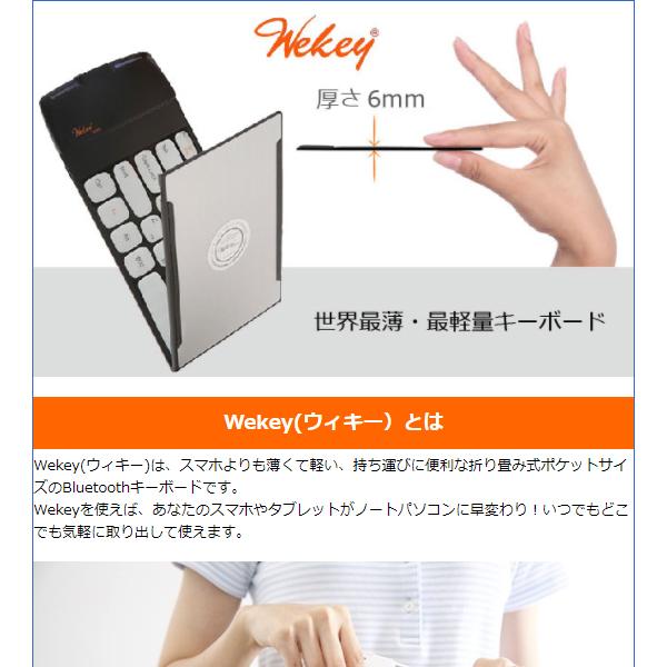 ●Wekey(ウィキー)は、スマホよりも薄くて軽い、持ち運びに便利な折り畳み式ポケットサイズのBluetoothキーボードです。