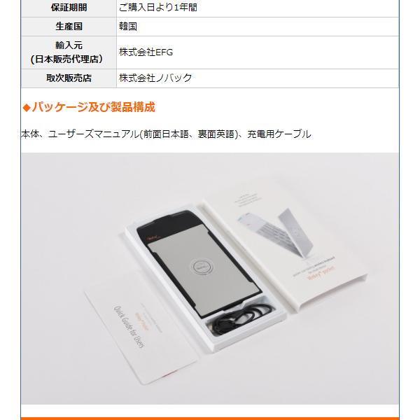 ●付属品: 本体、ユーザーズマニュアル(表面;日本語/裏面;英語)、充電用ケーブル