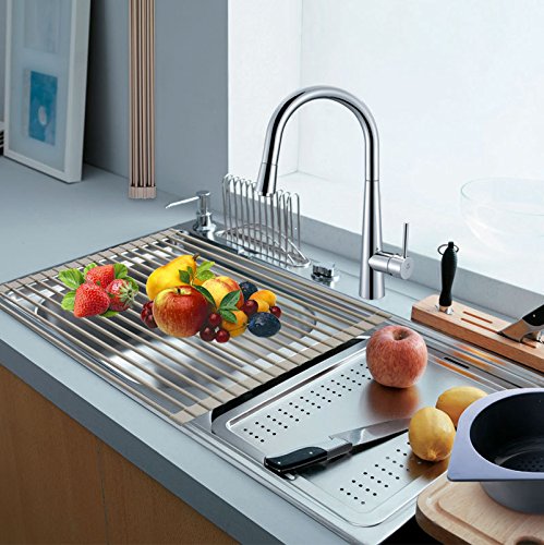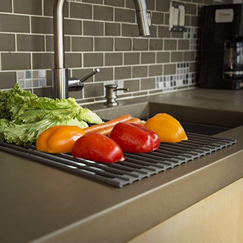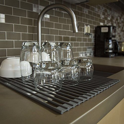 T&B Multipurpose Over the Sink Roll-Up Dish Drying Rack (Warm Gray)