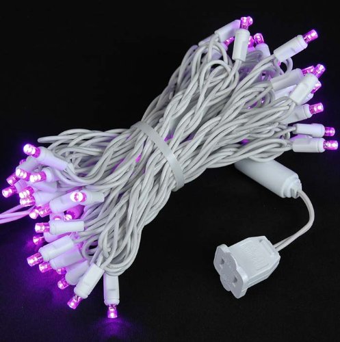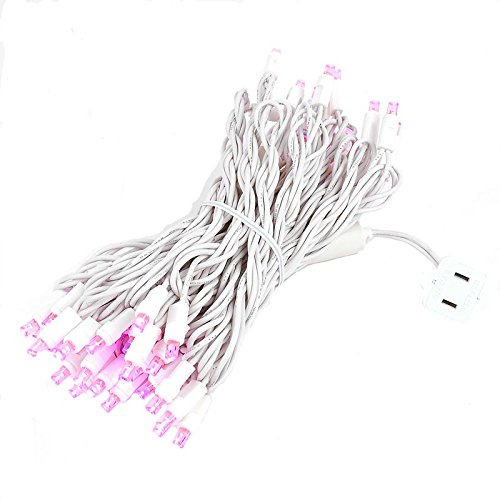 Novelty Lights 50 Light LED Christmas Mini Light Set, Outdoor Lighting Wedding Patio String Lights, Pink, White Wire, 25 Feet