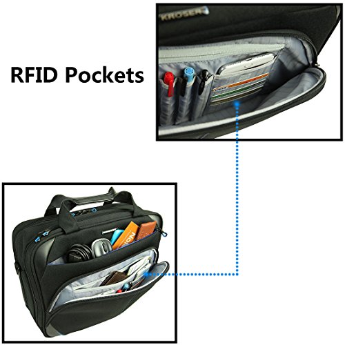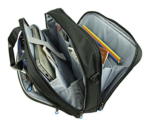 Roomy Compartment: Main compartment includes a 15.6" TSA-Friendly padded laptop compartment, tablet pocket, and 2 additional panel pockets, multiple additional sections for organization. Front zippered compartment with organizational pockets for pens, keys, cell phone, and other items. Back compartment for documents.