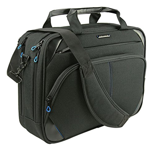 KROSER Multicompartment Laptop Messenger Bag 15.6 inch Canvas Computer Case Durable Tablet Sleeve Briefcase with RFID Pockets for Business College Women and Men-Black/Blue