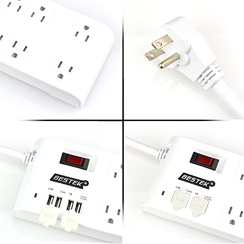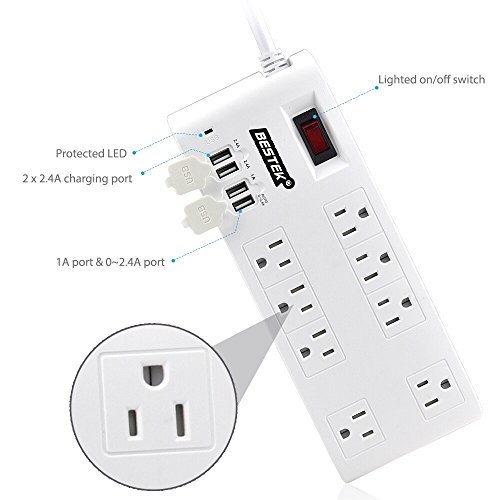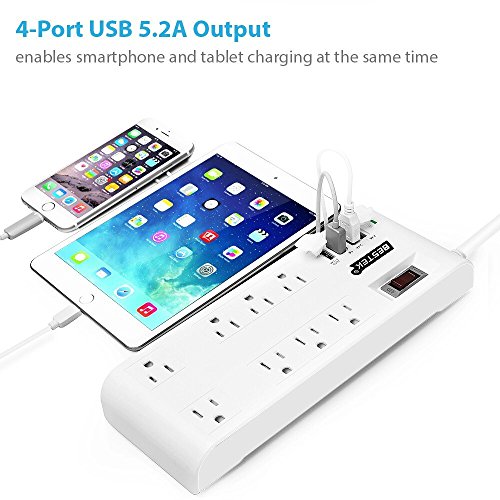 4-Port USB power strip fast and efficient charging for up to 4 digital devices simultaneously, total 5.2A, eliminating usb chargers