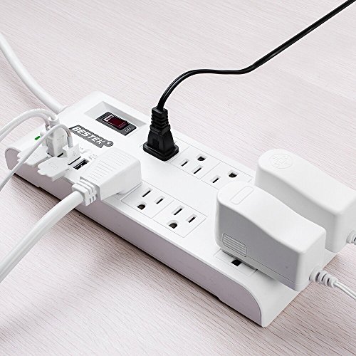 Mounting holes easily secure the surge protector to walls, baseboards, or furniture. Two widely spaced AC outlets accommodate large power adapters or chargershargers
