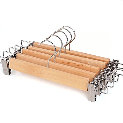 -. Title : New 5 Pcs Solid Wood Hangers Trousers Rack for Pants Folder Clip