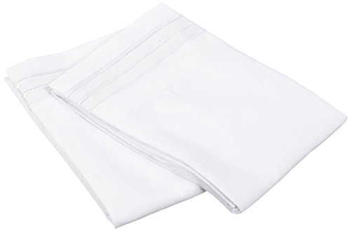 Super Soft Light Weight, 100% Brushed Microfiber, Standard, Wrinkle Resistant, 2-Piece Pillowcase Set, White with 3-Line Embroidery Detail