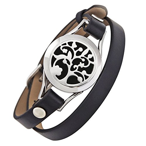 - Essential Diffuser Bracelet, EAGKORD Stainless Steel Locket Bracelets Leather Band with 8 Color Pads, Girls Women Jewelry Gift Set