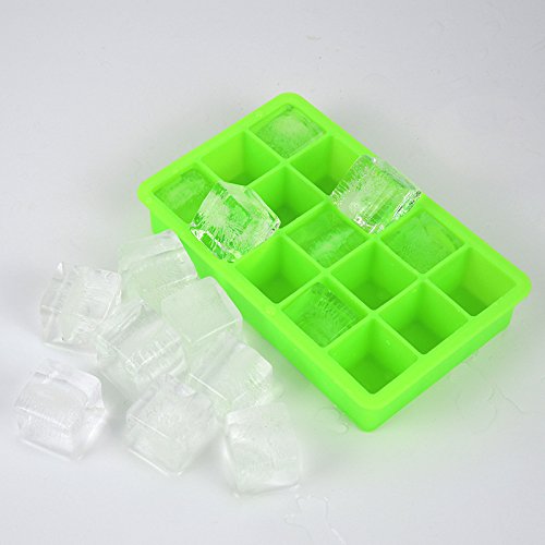 LetGoShop 15-Cavity Square Ice Cube Mold Tray Silicone Mold for Soap, Cake, Bread, Muffin, Cupcake, Chocolate Candy (Green)